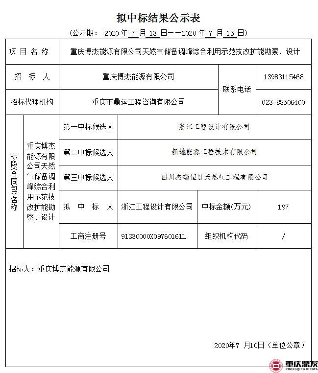 通知公告當(dāng)前位置:首頁>新聞中心>通知公告重慶博杰能源有限公司天然氣儲(chǔ)備調(diào)峰綜合利用示范技改擴(kuò)能勘察、設(shè)計(jì)擬中標(biāo)結(jié)果公示表發(fā)布日期:2020-07-13![]() |